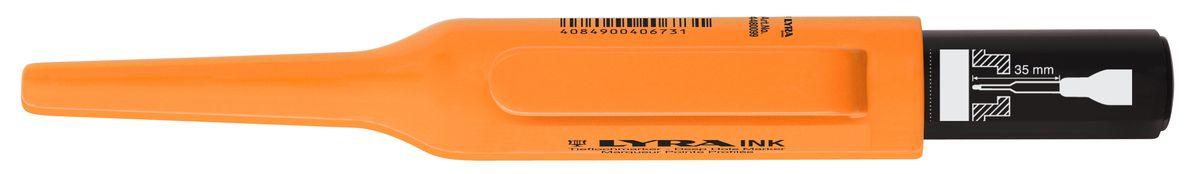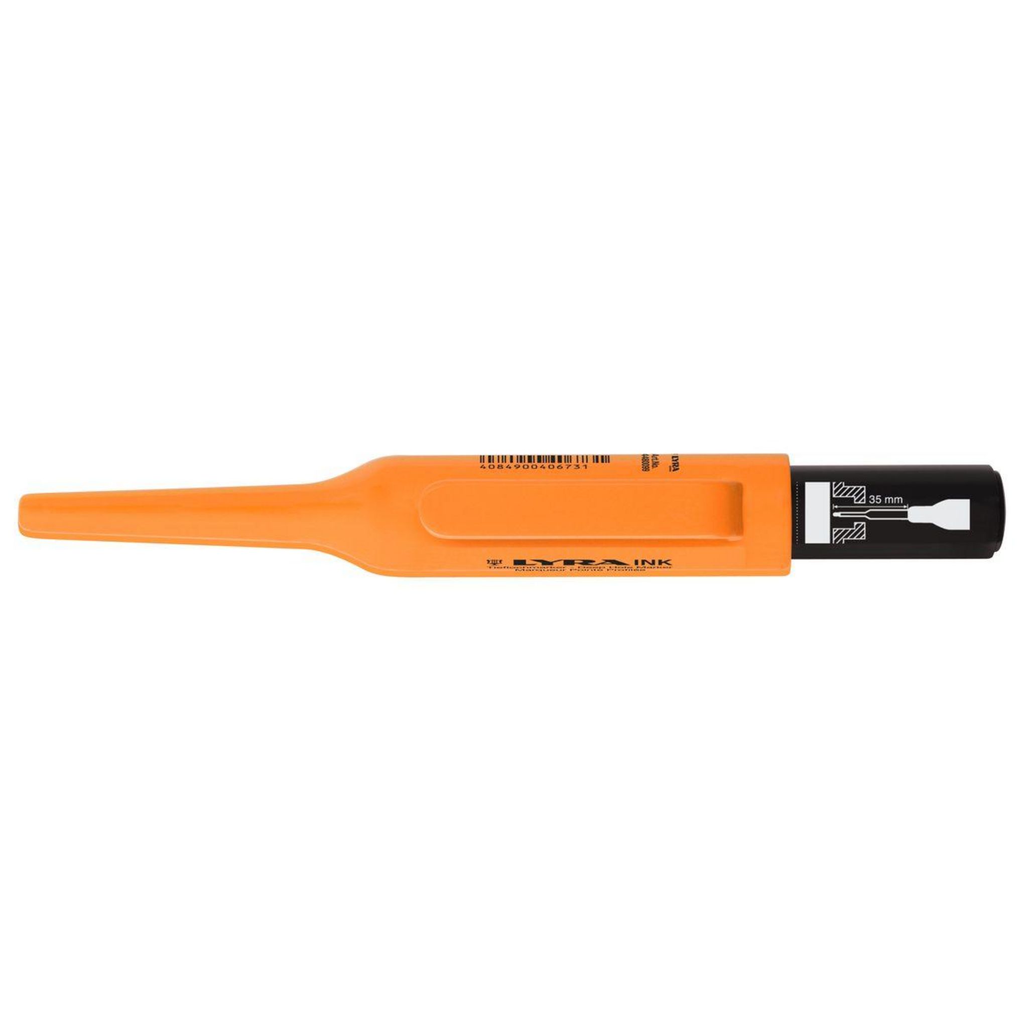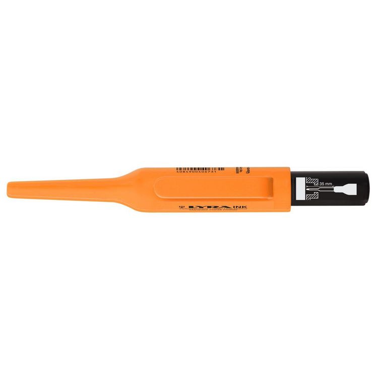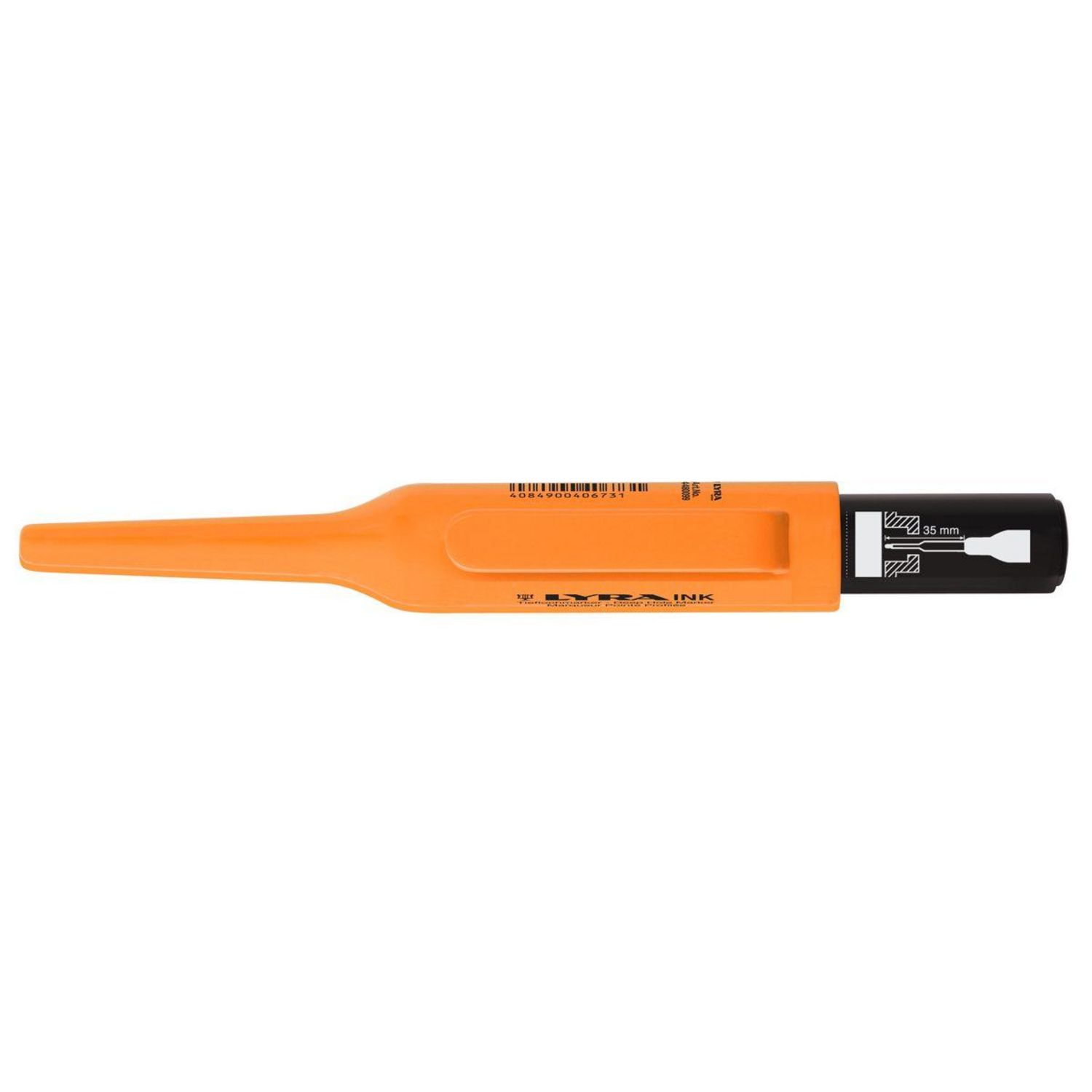 Marqueur Lyra Ink noirMarqueur Lyra à pointe fine et extra-longue Ø, 1,5 x 35 mm en acier inoxydable. Permet de marquer à travers un support (trou de vis) et de travailler dans les endroits difficiles d'accès. Forme triangulaire qui l'empêche de rouler. Encre permanente. Ecrit et marque sur to