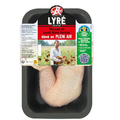 "Poulet élevé dans l''ouest de la France, en plein air.Nourri sans OGM (<0,9%) et sans traitement antibiotique."