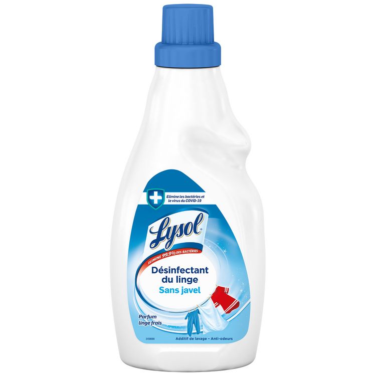 Lysol Désinfectant du Linge Le désinfectant Lysol Linge Frais aide à protéger votre famille des maladies en évitant la prolifération des virus et bactéries. Rapide, facile et efficace : il commence à agir sur les bactéries et les virus dès le premier contact. Avec sa formule sans javel, il élimine les bactéries à l’origine des mauvaises odeurs et laisse un parfum frais.
