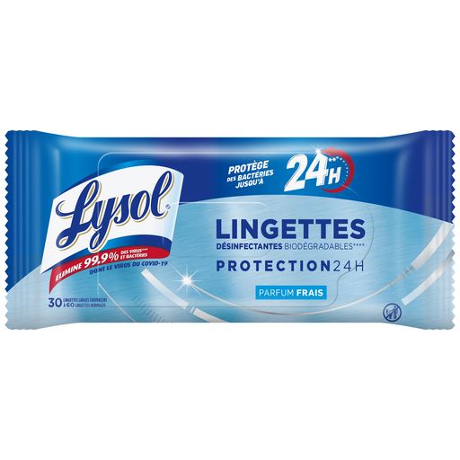 Lingettes Désinfectantes biodégradables protection 24h parfum frais