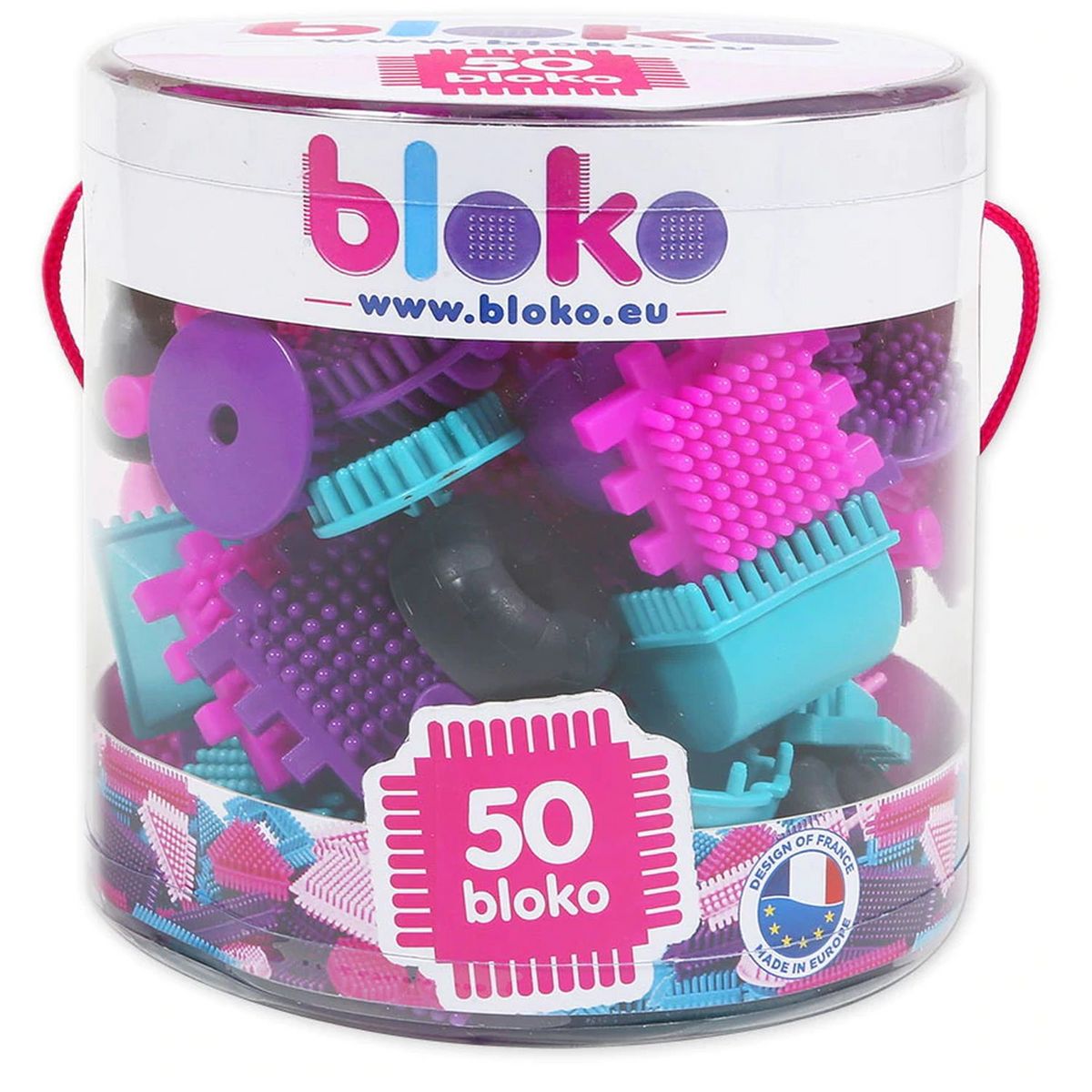 - Tube de 50 Bloko de construction de différentes couleurs et formes permettant différentes combinaisons et constructions.