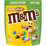 Assortiment de cacahuètes et de noisettes enrobées de chocolat au lait et dragéifiées M&M's cacahuète/Noisette, enrobées de chocolat au lait et dragéifiées - 400g