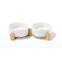 Bols céramique avec support en bambou 2x350 ml - Mpets - OPERA - Blanc
