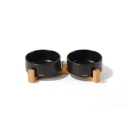 Bols céramique avec support en bambou 2x350 ml - Mpets - OPERA - Noir