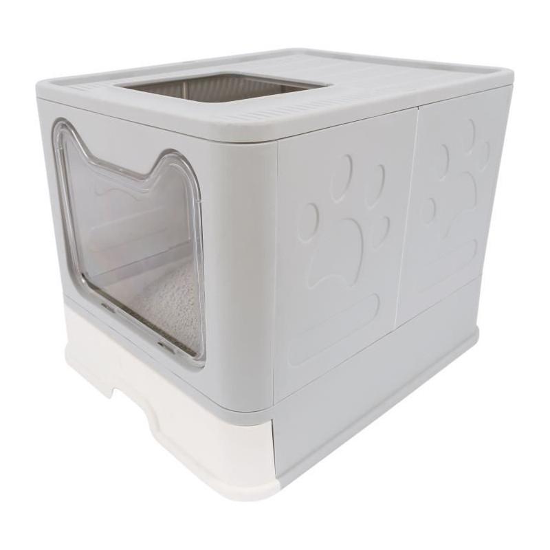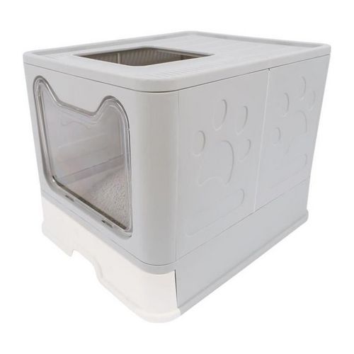 Maison de toilette - M PETS - SILE TOP - Gris - 51 x 41 x 12.5 cm - Pratique, démontable, tiroir coulissant, pelle incluse