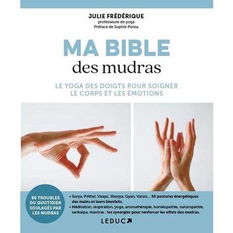 Soignez vos troubles physiques et émotionnels grâce au pouvoir des mudras, gestes subtils des doigts et des mains d'une efficacité remarquable. Les mudras sont des petites centrales d'énergie que chacun d'entre nous possède potentiellement au bout des doigts. Vous pouvez les stimuler en tout lieu, à tout moment pour soulager les maux du quotidien. - A la découverte des mudras : C'est quoi ? Comment pratiquer ? Où et quand ? A quel rythme ? - Les synergies pour renforcer les effets des mudras : yoga, respiration, méditation, sankalpa, mantras, aromathérapie, homéopathie, naturopathie... - Surya, la mudra de la minceur , Chin, la mudra de la sagesse , Akasha, la mudra de la détox , Ksepana, la mudra du lâcher-prise , Madhyama, la mudra de la digestion... 50 mudras faciles à réaliser pour renforcer votre santé et votre bien-être. - Allergies, asthme, fatigue, insomnie, mal de dos, ménopause, surpoids, trac... : 80 troubles physiques et émotionnels qui se soignent avec les mudras.