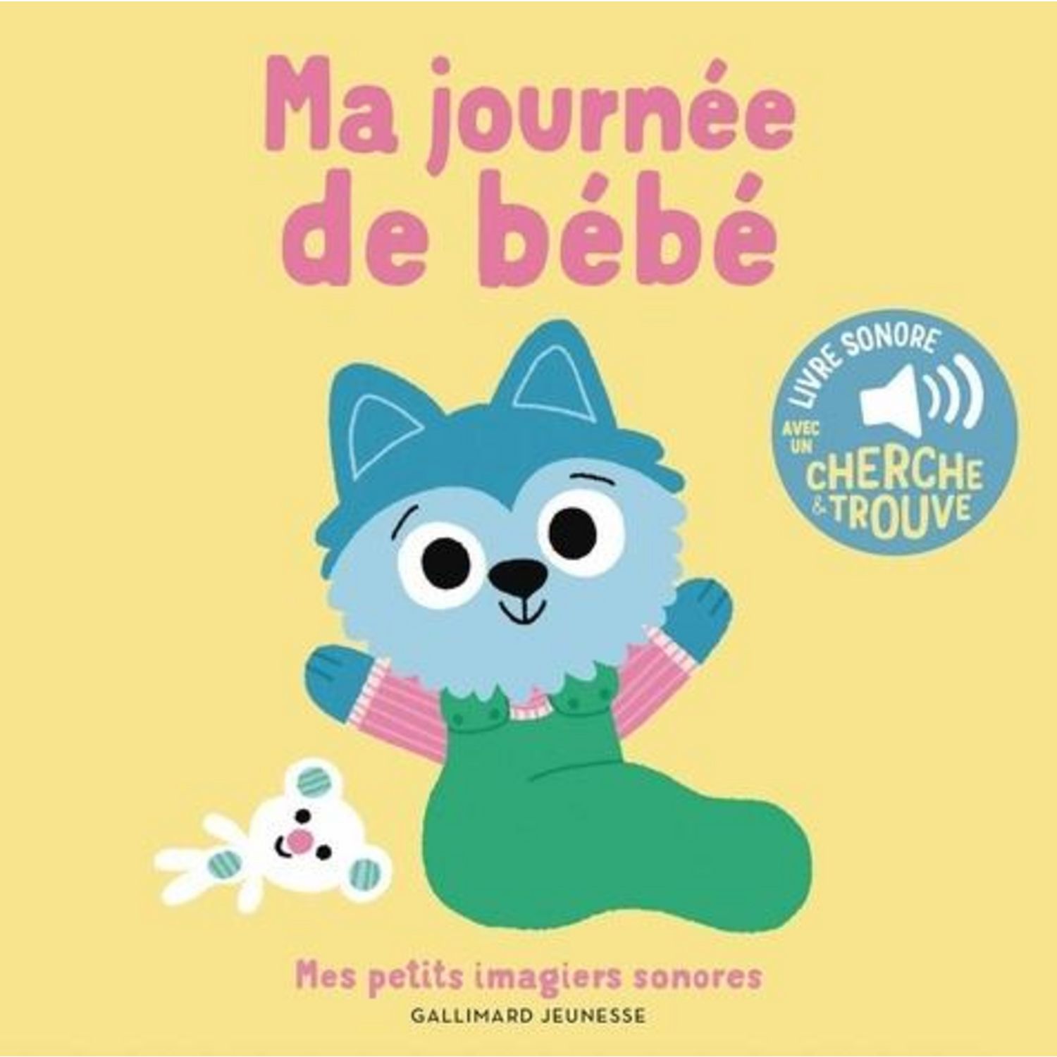 Ma journée de bébé, tout en sons et en images. 5 scènes sonores avec les petits moments du quotidien : - Bonjour ! - A vélo - Le repas - Le bain - Bonne nuit Les sons, choisis et mixés avec soin, enrichissent chaque scène pour la rendre encore plus vivante. Et toujours à la fin, un jeu de cherche et