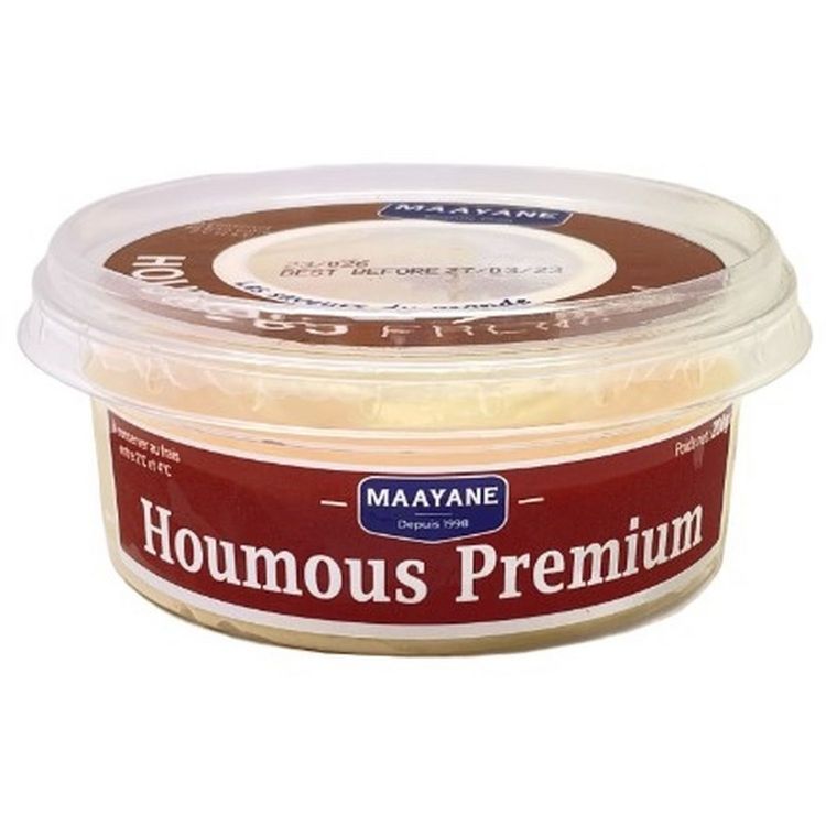 Ingrédients : Pois chiches cuits (44%), huile de soja, tahini ( 14%), sel, eau, stabilisant: gomme xanthane, amidon, ail, sorbate de potassium, correcteur d'acidité: acide citrique