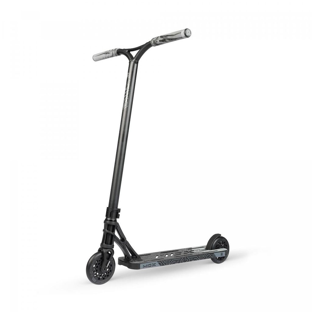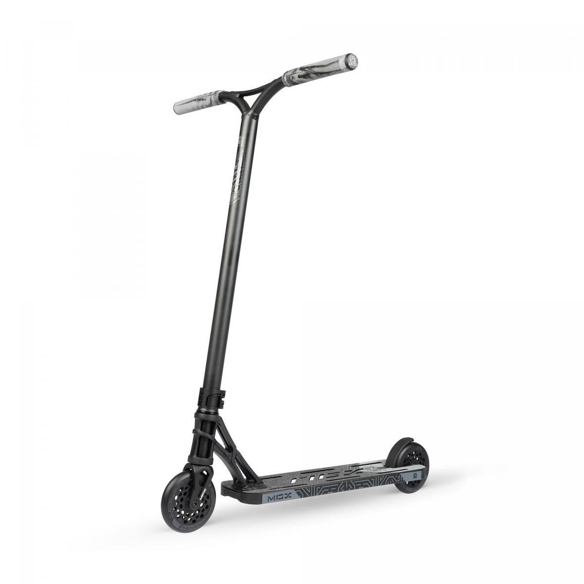 Plateau: 5 x 20,5 biphasé traité thermique 6061 extrusion concave en aluminium avec tube de tête intégré mgx «x» soudé à la machine. Fourche: aluminium mfx 120 mm blindside6061 sans filetage avec matériel 6 mm/hic standard. Clamp: mfx x2 cobra aluminium double avec visserie de 6 mm. Guidon: aluminium 6061 mgp turbine 23 x26 fade anodisé / diamètre surdimensionné avec cannelure interne. Poignées: tpr swirls super-soft sans bride de 180 mm avec embouts en nylon. Roues: 120 mm Scope moyeu creux en aluminium avec mélange de polyuréthane mgp fumé. Frein: mfx v3 composite blitz. Poids: 3,40 kg