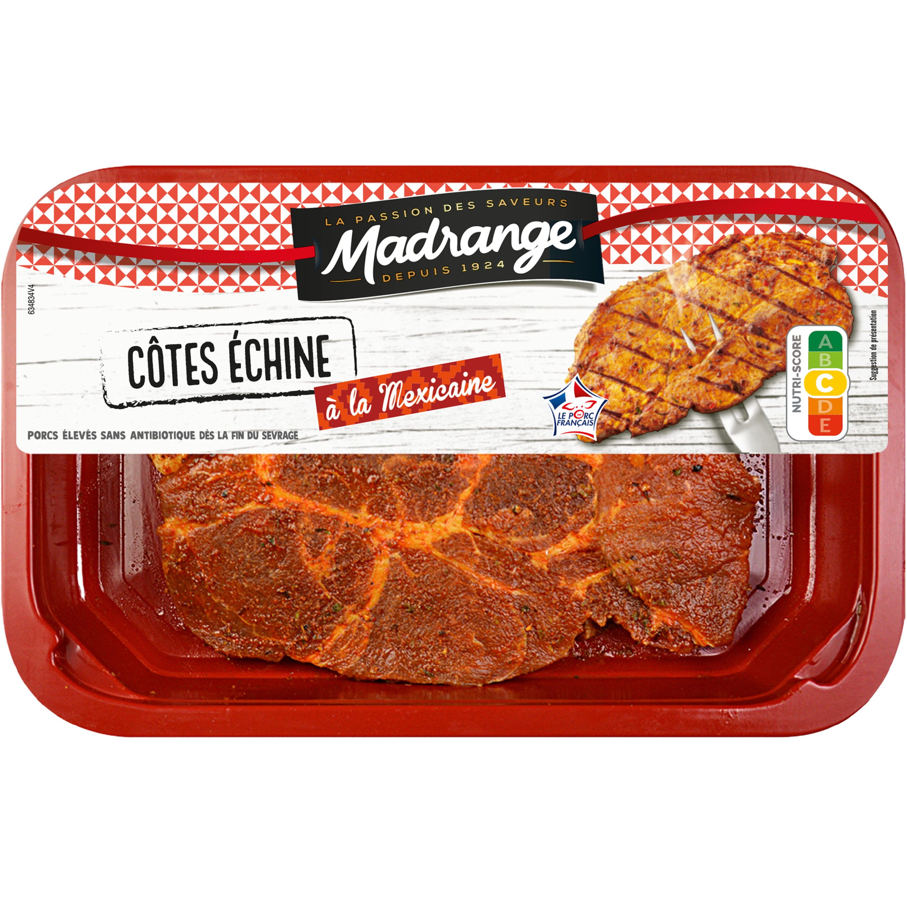 2 côtes échine de porc sans os saumurées marinées à la mexicaine.