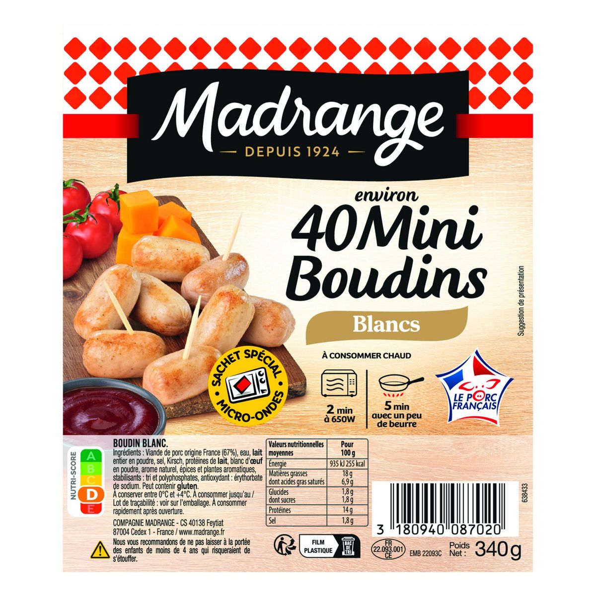 Viande de porc origine France 67%, eau, LAIT entier en poudre, sel, Kirsch, protéines de LAIT, blanc d'OEUF en poudre, arôme naturel, épices et plantes aromatiques, stabilisants : tri et polyphosphates, antioxydant : érythorbate de sodium. Peut contenir GLUTEN.