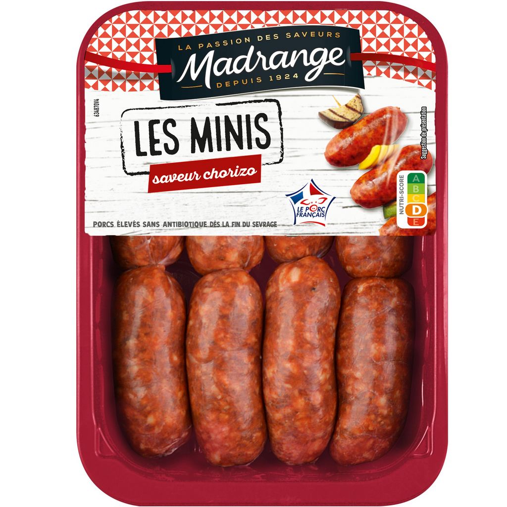 8 Saucisses supérieures pur porc saveur chorizo.