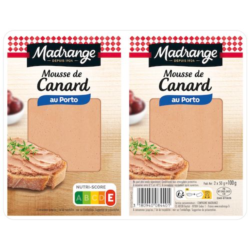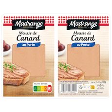 Gras de porc, foie maigre de canard 21%, foie de poulet, graisse de canard 10%, couenne de porc, eau, saindoux, graisse de poulet, Porto 1,7%, crème (LAIT), farine de BLE, sel, sucre, poudre de LAIT écrémé, arôme naturel, poivre, antioxydant : ascorbate de sodium, colorant : huile de paprika, conservateur : nitrite de sodium. Peut contenir OEUFS. Porc origine France, canard et poulet origine UE, Porto origine Portugal.
