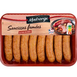Découvrez les savoureuses saucisses fumées Madrange. Un produit délicatement fumé au bois de hêtre, dans une recette au goût unique et cuisiné pour plaire au plus grand nombre. Une viande de porc 100% origine France.