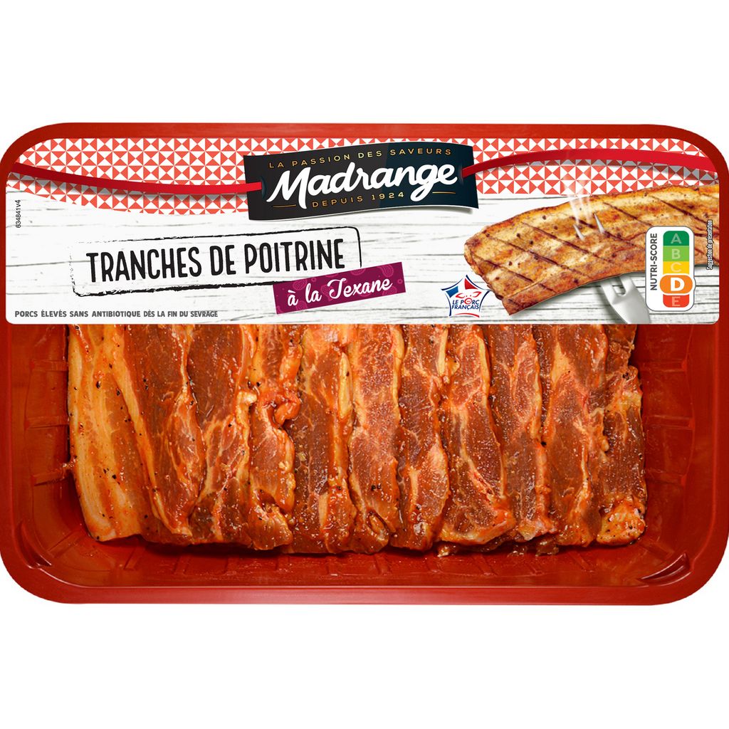 10 tranches de poitrine de porc sans os saumurées marinées à la texane