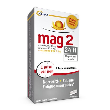 Le comprimé Mag2 24H apporte en une seule prise la dose nécessaire de magnésium, de vitamine B6 et B12 pour toute la journée grâce à sa technologie bicouche. Une première couche libère de la vitamine B6, B12 et 150 mg de magnésium pour une assimilation immédiate, une seconde couche forme - au contact des liquides - une matrice autour des 150 mg de magnésium restants afin de les diffuser de manière soutenue et progressive dans l’organisme.