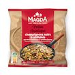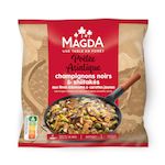 Ingrédients : Champignons 57,2% (shiitake (lentinus edodes), pleurote (pleurotus ostreatus), champignon noir), fèves de soja 16,9%, carotte 14%, Sauce 11,9% (eau, huile de tournesol, pulpe d'ail, sauce soja (maltodextrine (gluten), sel), persil, sel, piment rouge)