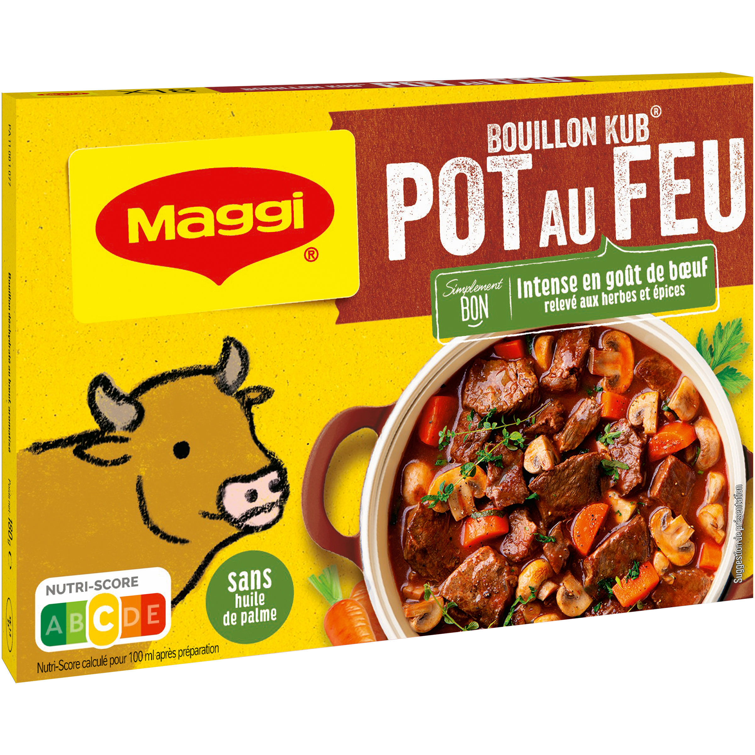 Découvrez le Bouillon KUB Pot-au-feu, une recette s'inspirant de la tradition qui allie le bon goût de bœuf à celui de délicieux légumes. Recette intense en goût de boeuf relevé aux herbes et épices, sans huile de palme et avec des ingrédients de qualité. Ce petit cube apportera une note cuisinée à tous vos plats en un seul geste ! Existe aussi en format 8 cubes. Astuce : idéal pour parfumer toutes vos farces.