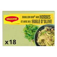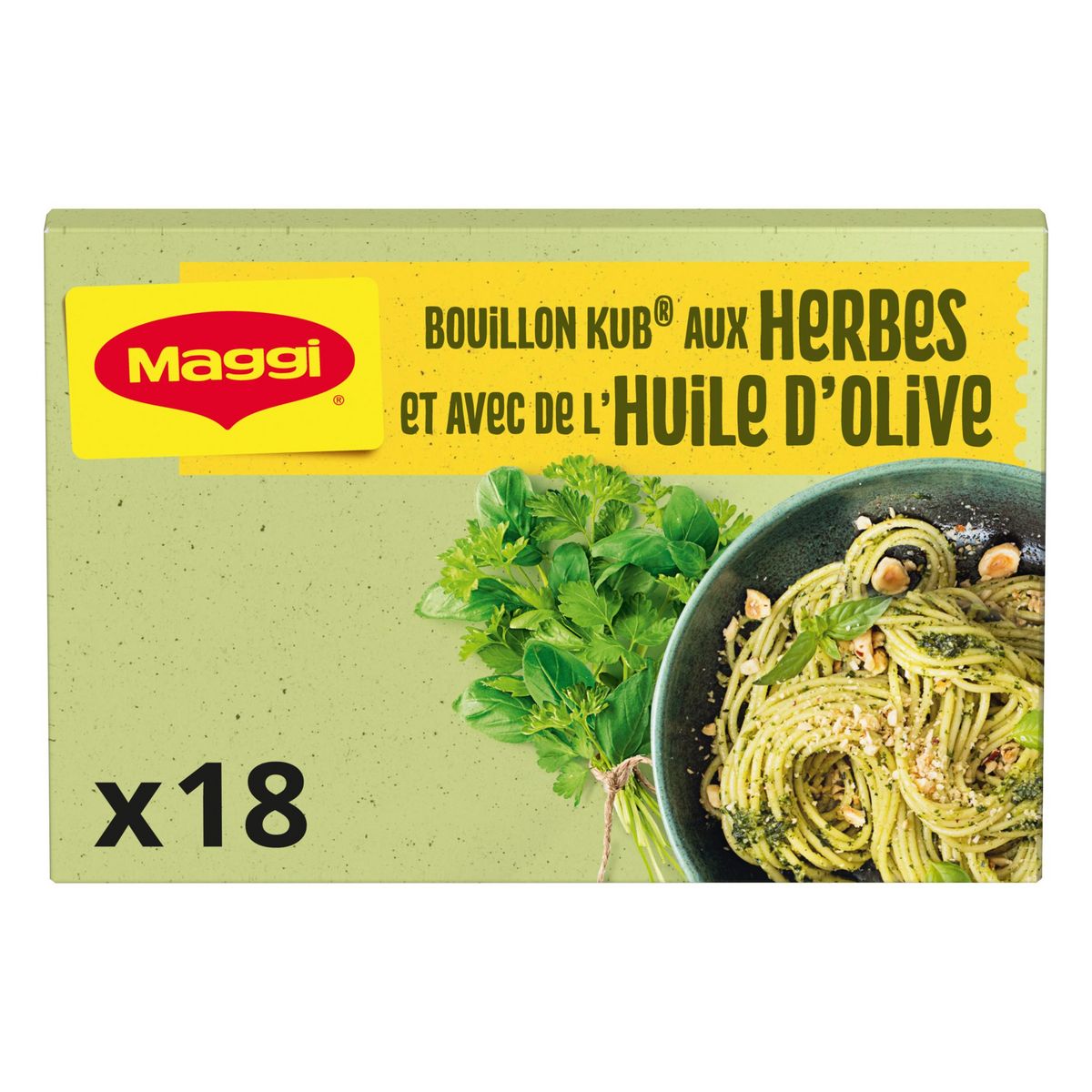 Découvrez les nouveaux cubes de bouillon KUB HUILE D'OLIVE & HERBES de MAGGI®, une recette associant l'huile d'olive vierge extra et son riche goût en herbes pour un goût inimitable ! Bouillon 100% végétal* et sans huile de palme, ce petit cube deviendra votre allié dans la préparation de vos plats de pâtes et permettera de leur donner une délicieuse touche cuisinée ! Parfait pour les végétariens ! Pensez à les diluer ou les émietter dans vos préparations pour profiter de sa saveur authentique ! Astuce : Le Bouillon KUB Légumes de MAGGI® est idéal pour parfumer vos plats d'été et d'hiver. *Ne contient pas d'ingrédient d'origine animale.