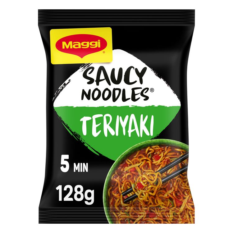Découvrez la nouvelle gamme de nouilles instantanées SAUCY NOODLES® de MAGGI® et voyagez au travers des saveurs phares de l'Asie ! Laissez-vous tenter/porter par la générosité de nos nouilles à la sauce teriyaki et ses petits légumes. Cette recette, à base de sauce soja et de subtiles notes d'ails, est inspirée de la tradition culinaire japonaise. Un plat préparé de nouilles instantanées et riche en sauce, prêt en 5 minutes et dans un format généreux. SANS HUILE DE PALME .