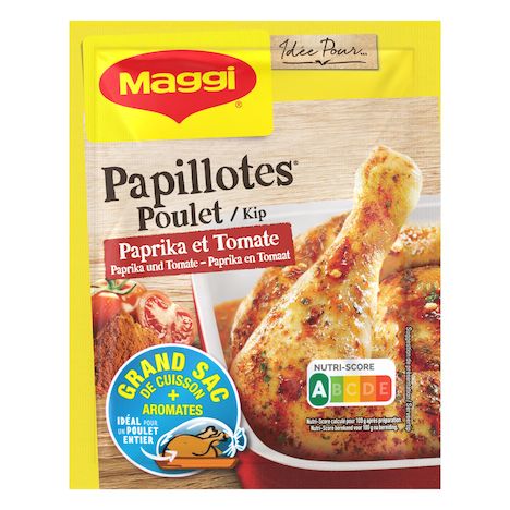 Réinventez vos plats du quotidien avec PAPILLOTES® Poulet Paprika et Tomate de MAGGI® et son subtil mélange d'herbes et d'épices ! Vous réussirez à coup sûr un poulet délicieux, tendre et juteux, sans ajouter de matière grasse. Craquez pour PAPILLOTES® Poulet Paprika et Tomate de MAGGI® et réalisez, en seulement 3 étapes, un poulet savoureux au bon goût de tomate, de paprika et d'herbes aromatiques.