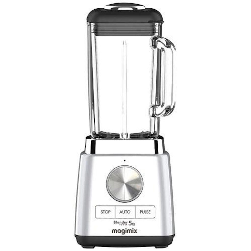 Magimix 11643 Blender 2 L - Power 5 XL - Faites le plein de vitamines en un clin d??il ! - Il mixe les ingrédients sans les échauffer pour que vous puissiez bénéficier de tous les bienfaits des fruits et des légumes - Connecté en Bluetooth. ce blender reçoit directement tous les réglages depuis l'application . il n'y a plus qu'à appuyer sur AUTO - Bol 2 litres (capacité utile) gradué en verre thermorésistant pour réaliser toutes vos préparations chaudes ou froides - Couvercle étanche avec bouchon doseur gradué - Technologie Blender Mix : conception des lames et du bol optimisée pour une émulsion parfaite permettant d'obtenir une texture vraiment veloutée pour les smoothies. les soupes et les pâtes à crêpes - Variateur de vitesses - Grande amplitude de vitesse de 600 à 22 000 tours/minutes - Fonction Pulse/Turbo - 4 fonctions préprogrammées : Glace pilée. Smoothies. Soupes. Desserts glacés + 1 mode Manuel + 1 fonction Rinçage - Spatule mélangeur - Livre de 85 recettes salées et sucrées + application dédiée gratuite - Coloris Chromé - Puissance 1500 W - Moteur garanti 30 ans - Garantie 3 ans pièces et 2 ans main d'?uvre.