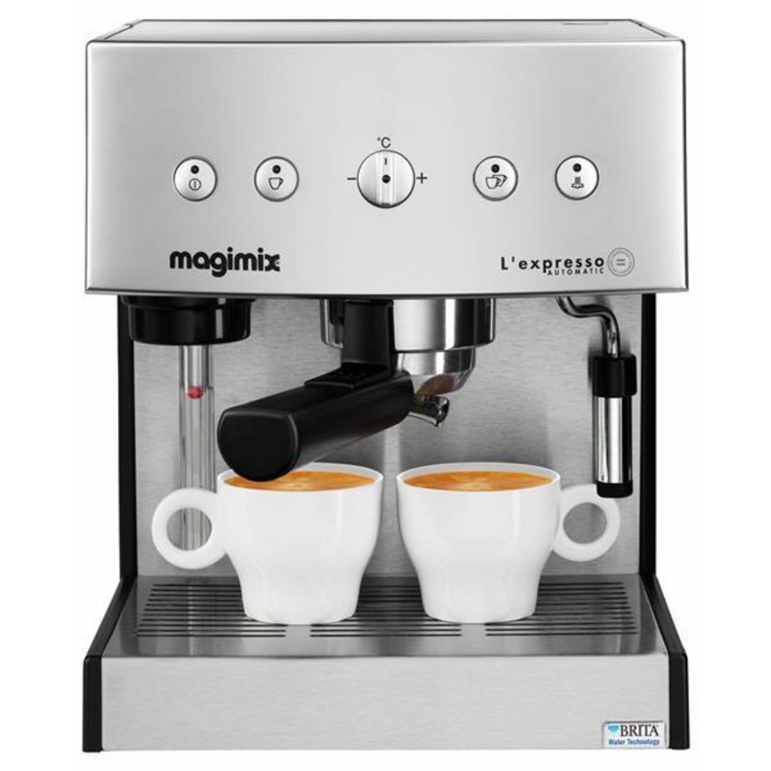 Magimix 11414 La machine à café Expresso automatique 11414 de Magimix permet de préparer un café savoureux et personnalisé, avec une mousse de lait onctueuse, une pression de 19 bars et un réservoir d'eau de 1,8 L.