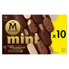 Glace bâtonnet Classic, Amande et Chocolat blanc Magnum dans un format mini, 10 glaces de 55 ml.