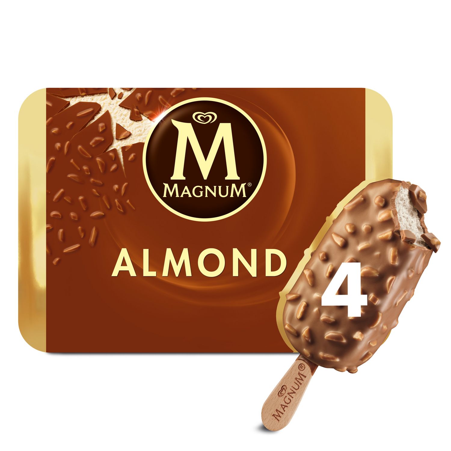 Magnum Amande est une onctueuse glace vanille enrobée d’un épais chocolat au lait craquant et d’éclats d'amandes. Elle allie la douceur de la vanille de Madagascar avec le croquant des amandes cultivées sous le soleil de la Californie. Parfum historique et emblématique, le bâtonnet gourmand Magnum Amande est un incontournable dans l’univers de la glace depuis plus de 25 ans. Le plaisir est là, saisissez-le ! Pour une meilleure dégustation, sortez vos glaces Magnum du congélateur quelques minutes avant de profiter de leurs saveurs.