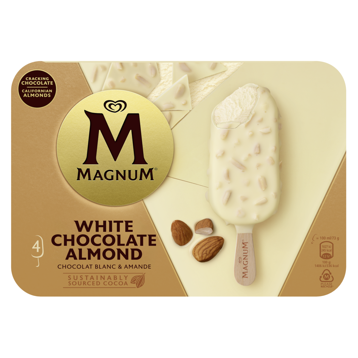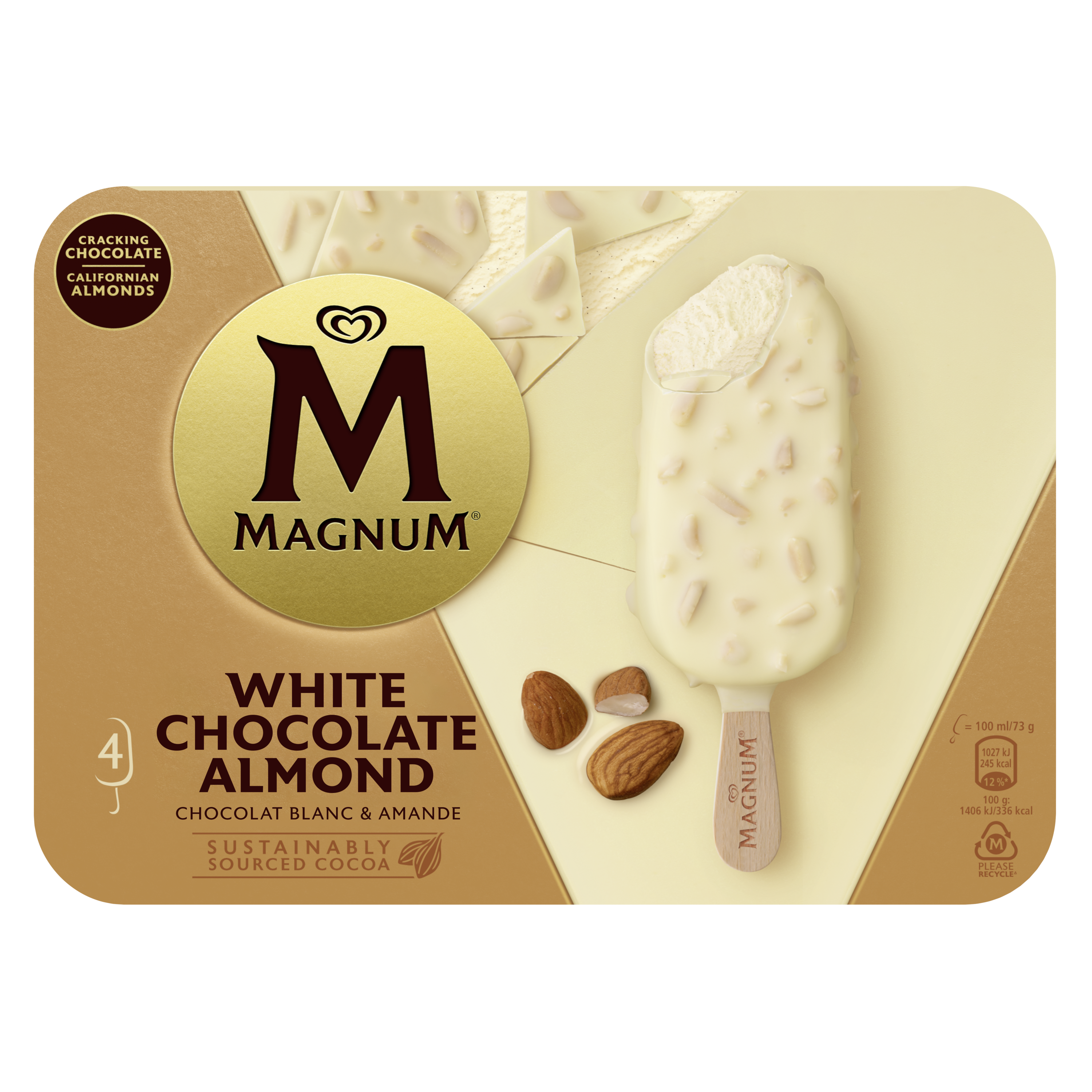 4 glaces Chocolat Blanc Amande de gourmandise ultime pour ceux qui recherchent un maximum de plaisir.