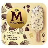 Glace bâtonnet Chocolat Blanc & Cookies Magnum, 3 glaces de 90 ml.