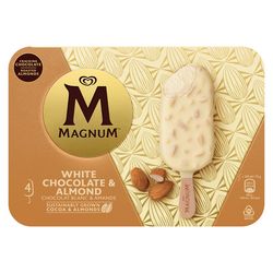 Glace bâtonnet Chocolat Blanc Amande Magnum, 4 glaces de 100 ml.