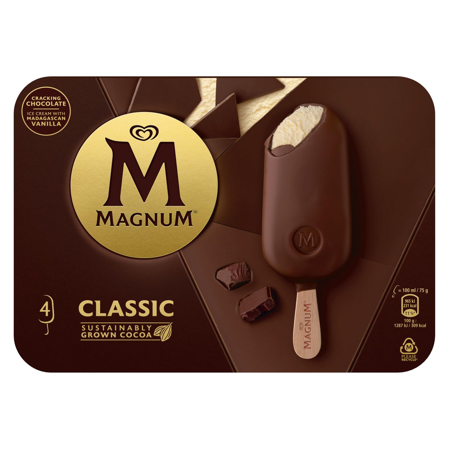 Glace bâtonnet Classic Magnum, 4 glaces de 100 ml.