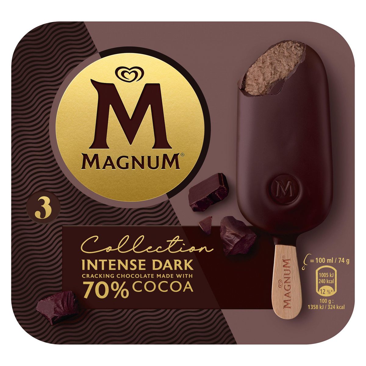 Glace bâtonnet Magnum Intense Dark, 3 glaces de 100 ml.