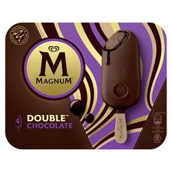 Glace bâtonnet Double Chocolat Magnum, 4 glaces de 85 ml.
