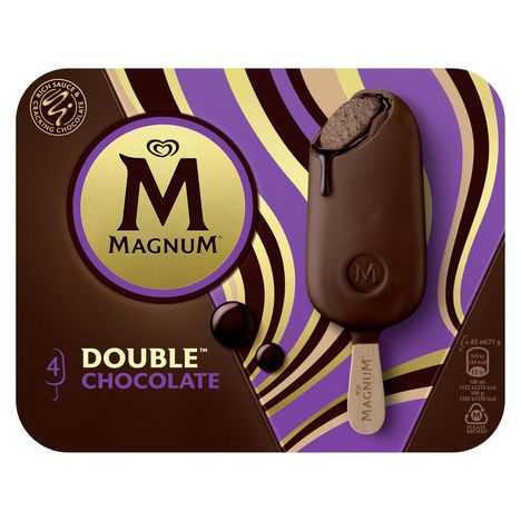 Magnum Double Chocolat est une glace chocolat onctueuse dans un premier enrobage de cacao accompagné d'une sauce au chocolat et un second enrobage au chocolat au lait. Retrouvez le croquant Magnum dès la première bouchée, un savoureux enrobage de chocolat au lait qui dévoile une délicieuse glace. Une forme emblématique, irrésistiblement craquante à l'extérieur, onctueuse à l'intérieur. Pour profiter pleinement de leurs saveurs, sortez vos glaces Magnum du congélateur quelques minutes avant de les déguster. Magnum voit le jour en 1989 afin de satisfaire un désir de gourmandise activement recherché par les adultes. Le bâtonnet se pare alors d'un enrobage au chocolat de grande qualité. Depuis, Magnum ne cesse de surprendre en élargissant chaque année son offre de nouveaux parfums. Aujourd'hui leader sur le marché de la glace, la marque offre une expérience toujours plus intense et premium. Les créations Magnum ? Irrésistibles de l'extérieur, onctueuses à l'intérieur, aussi savoureuses qu'intemporelles, elles ont su traverser les modes et s'imposer comme des saveurs incontournables. Leur signature ? Une forme emblématique, des parfums synonymes de plaisir et ce fameux chocolat craquant incomparable, qui n'a jamais failli à ses délicieuses promesses ! À redécouvrir et à savourer, encore et toujours. Magnum, fidèle au plaisir.
