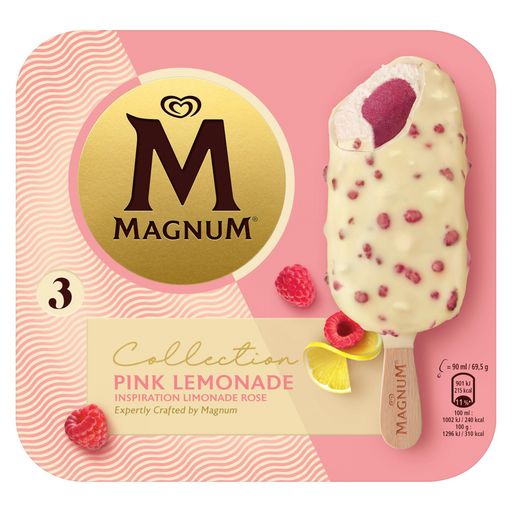 Glace bâtonnet Euphoria Inspiration Limonade Rose Magnum, 3 glaces de 90 ml.