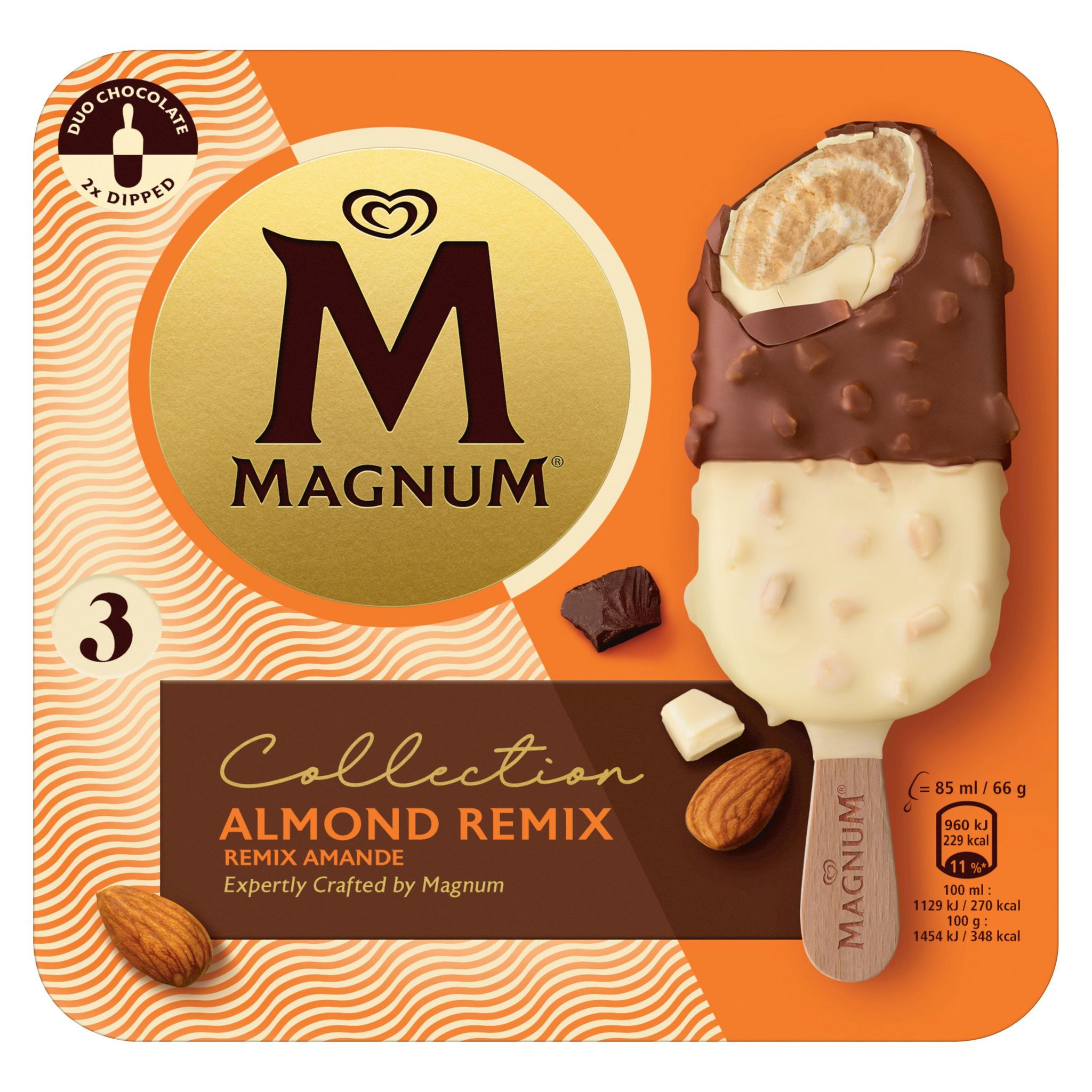 Glace bâtonnet Magnum Amande Remix, 3 glaces de 85 ml