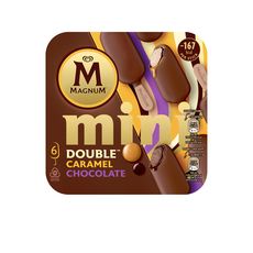 Découvrez les nouveaux bâtonnets Mini Magnum Double Caramel Chocolat ! Une savoureuse glace vanille enrobée de cacao et recouverte d'une sauce intense caramel salée, le tout enveloppé d'une épaisse couche de chocolat au lait craquant. Ainsi qu'une savoureuse glace au chocolat enrobé de cacao et recouverte d'une sauce intense chocolat, le tout enveloppé d'une épaisse couche de chocolat au lait craquant. Un véritable délice pour les gastronomes passionnés. Retrouvez le craquant Magnum dès la première bouchée, un enrobage chocolat à la saveur inégalée qui dévoile une glace onctueuse. Un pur moment de plaisir, de l'ouverture du sachet à la dernière bouchée. Sortez les glaces Magnum du congélateur quelques minutes avant de les déguster afin de profiter pleinement de leurs saveurs. Pour une expérience ultime de gourmandise et un maximum de plaisir craquant, osez Magnum Double. Magnum voit le jour en 1989 dans le but de satisfaire un désir de gourmandise activement recherché par les adultes. Le bâtonnet, un format jusque-là plutôt réservé aux enfants, se pare alors d'un enrobage au chocolat de grande qualité. Magnum devient ainsi la première marque de glaces entièrement consacrée aux plaisirs gourmands des adultes. Depuis, Magnum ne cesse de surprendre en élargissant chaque année son offre de nouveaux parfums. Aujourd'hui leader sur le marché de la glace, la marque offre une expérience toujours plus intense et premium. Les créations Magnum ? Irrésistibles de l'extérieur, onctueuses à l'intérieur, aussi savoureuses qu'intemporelles, elles ont su traverser les modes et s'imposer comme des saveurs incontournables. Leur signature ? Une forme emblématique, des parfums synonymes de plaisir à l'état pur et ce fameux chocolat craquant incomparable, qui n'a jamais failli à ses délicieuses promesses ! Magnum s'engage en certifiant la qualité et l'origine de ses ingrédients. 100 % du cacao du chocolat Magnum est cultivé de façon durable dans des plantations labellisées Rainforest Alliance, une ONG internationale qui agit sur 3 piliers : écologique, social et économique. À redécouvrir et à savourer, encore et toujours. Magnum, fidèle au plaisir.