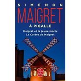 Maigret et la jeune morte (1954) : Il est trois heures du matin quand on signale à la P. J. la présence d'un cadavre, place Vintimille dans le IXe arrondissement. C'est une très jeune fille, vêtue d'une robe bleue. Maigret veut à tout prix comprendre pourquoi et comment la vie de Louise s'est arrêtée, une nuit, sur un trottoir de Pigalle. La Colère de Maigret (1963) : Emile Boulay est propriétaire de plusieurs cabarets à Montmartre. Bon père de famille, il vit modestement et ne cède ni au racket ni aux menaces de la pègre qui a fait main basse sur son quartier. Un soir, il disparaît. Deux enquêtes du célèbre commissaire, réunies dans un même volume, où l'on découvre qu'à Pigalle police et truands ne font pas bon ménage.