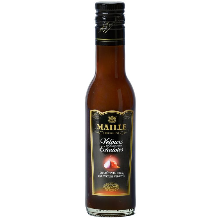 Un détail peut faire la différence. Un condiment peut révéler l'âme d'un plat. Animés par la passion et la quête de la perfection, les chefs de la Maison Maille conçoivent chaque recette comme une œuvre d'art culinaire. Leur obsession : explorer, sélectionner et associer les meilleurs ingrédients pour apporter son supplément d'âme à chaque recette. Ils sont les héritiers d’une tradition et d’une créativité cultivées depuis plus de 270 ans. aille, c’est la touche qui réveille et révèle la beauté d'un plat. Une touche de créativité qui exacerbe le goût, accroît le plaisir et comble les gourmets les plus exigeants… Les produits Maille invitent à un voyage dans le monde des saveurs. Avec comme passagers de choix : la passion du détail, l’art de la nuance et le raffinement. Un peu d’histoire… C’est en 1747 qu’Antoine-Claude Maille, maître vinaigrier, ouvrit sa boutique rue Saint-André des Arts à Paris. Très vite, il devient le fournisseur officiel du roi Louis XV puis des cours européennes. La maison Maille devient alors synonyme d’excellence, de raffinement et de savoir-faire. C’est en 1931 que le célèbre slogan « Il n’y a que Maille qui m’aille » est créé. Découvrez aussi notre boutique en ligne sur www.maille.com Spécialité aux vinaigres (58%) et jus d'échalote (4%)