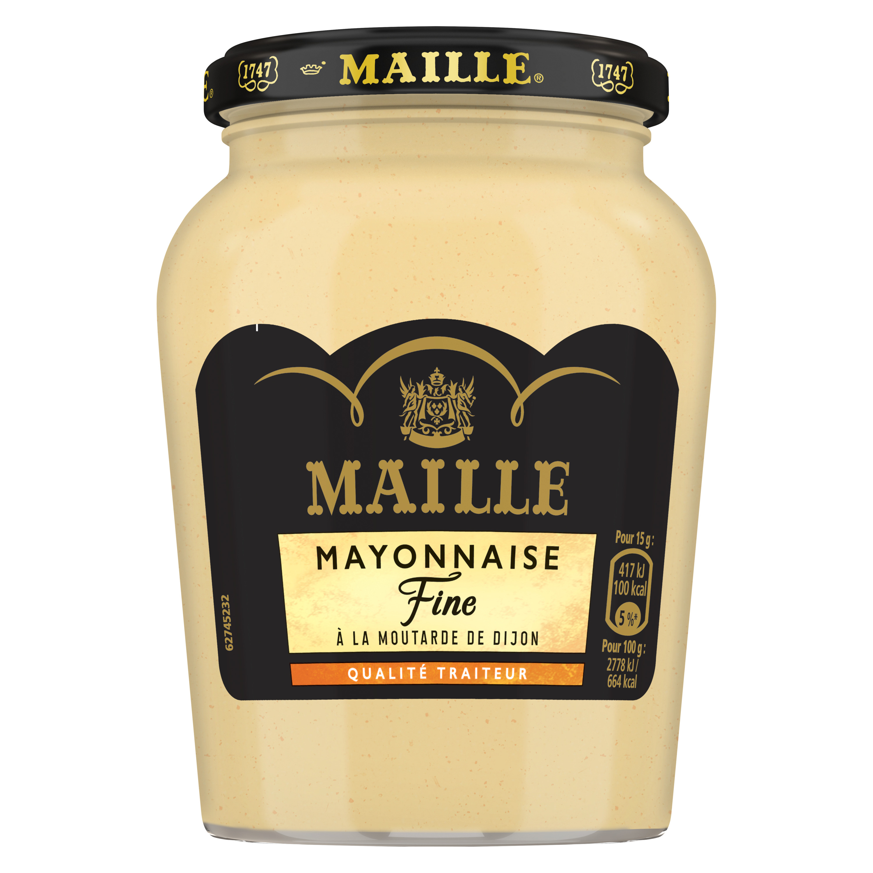 La Mayonnaise Fine Qualité Traiteur Maille est une recette raffinée de Mayonnaise, préparée et rehaussée à l'aide d'une recette emblématique : la Moutarde de Dijon Maille. Son goût équilibré et sa texture onctueuse se marieront parfaitement avec des crustacés, des salades de céleri râpé ou en œufs mimosa. Depuis près de 270 ans de tradition créative et de savoir-faire, la Maison Maille est animée par la passion d'explorer les saveurs et de faire grandir celle pour la cuisine. Fondée par Antoine-Claude Maille, maitre vinaigrier, il ouvre sa première boutique de condiments à Paris en 1747, où l'on peut découvrir la richesse de ses moutardes aromatisées. Il devient ensuite le fournisseur officiel de la cour du roi Louis XV et accède ainsi à la célébrité. Héritiers d'une créativité cultivée depuis près de trois siècles, les chefs de la Maison Maille conçoivent chaque recette comme une œuvre d'art culinaire. Leur obsession : explorer, sélectionner, et associer les meilleurs ingrédients pour apporter son supplément d'âme à chaque recette. Le condiment Maille est la touche qui réveille et révèle la beauté d'un plat. Une touche de créativité qui exacerbe le goût, accroît le plaisir et comble les gourmets les plus exigeants… Les produits de la marque Maille invitent à un voyage dans le monde des saveurs. Avec comme passagers de choix : le savoir-faire, la passion du détail, l'art de la nuance et le raffinement. Pour une expérience immersive dans l'univers Maille, rendez-vous dans nos boutiques à Paris, Dijon et Bordeaux. Découvrez nos recettes sur www.maille.com.