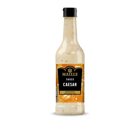 Ingrédients : eau, huile de Colza, Parmigiano Reggiano 5% (LAIT de vache, sel, présure), jaune d'OEUF, vinaigre d'alcool, sel, MOUTARDE (eau, graines de MOUTARDE, vinaigre d'alcool, sel) amidon modifié, acidifiant : acide lactique, sucre, ail déshydraté, épaississant : gomme xanthane, poivre.