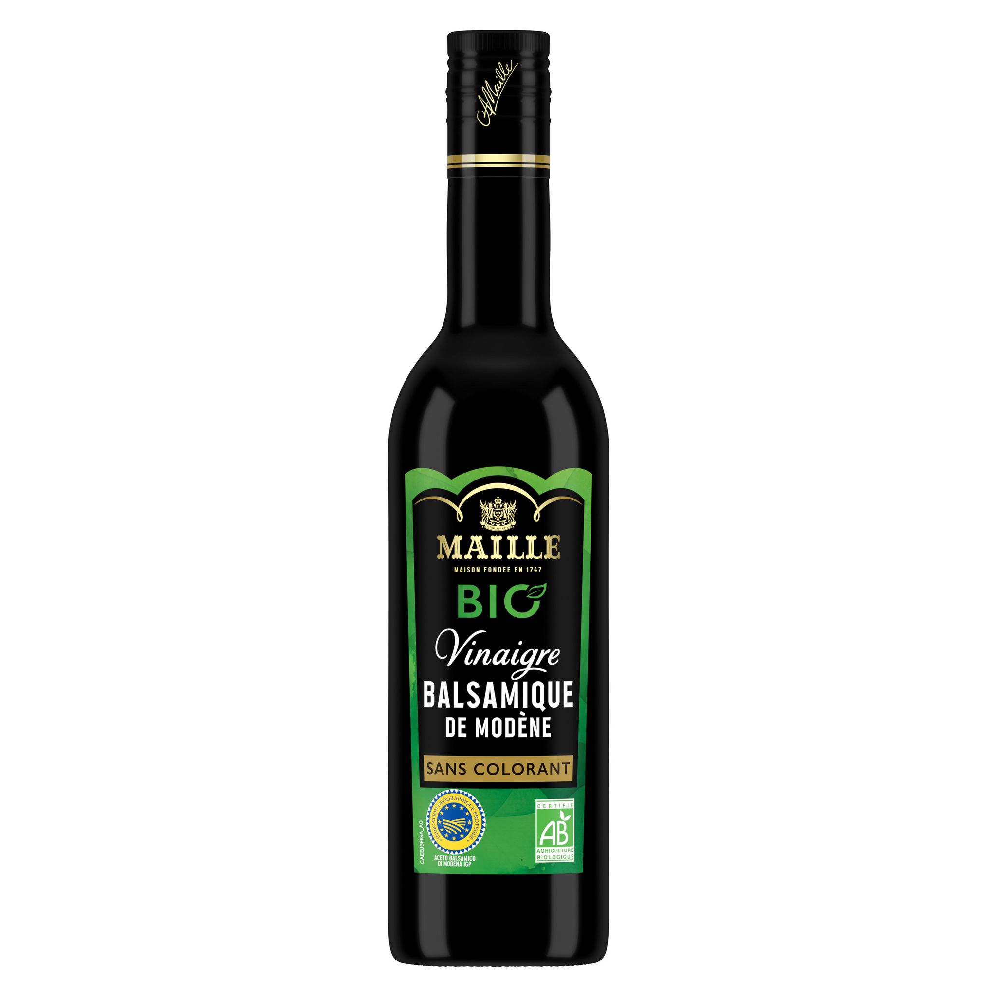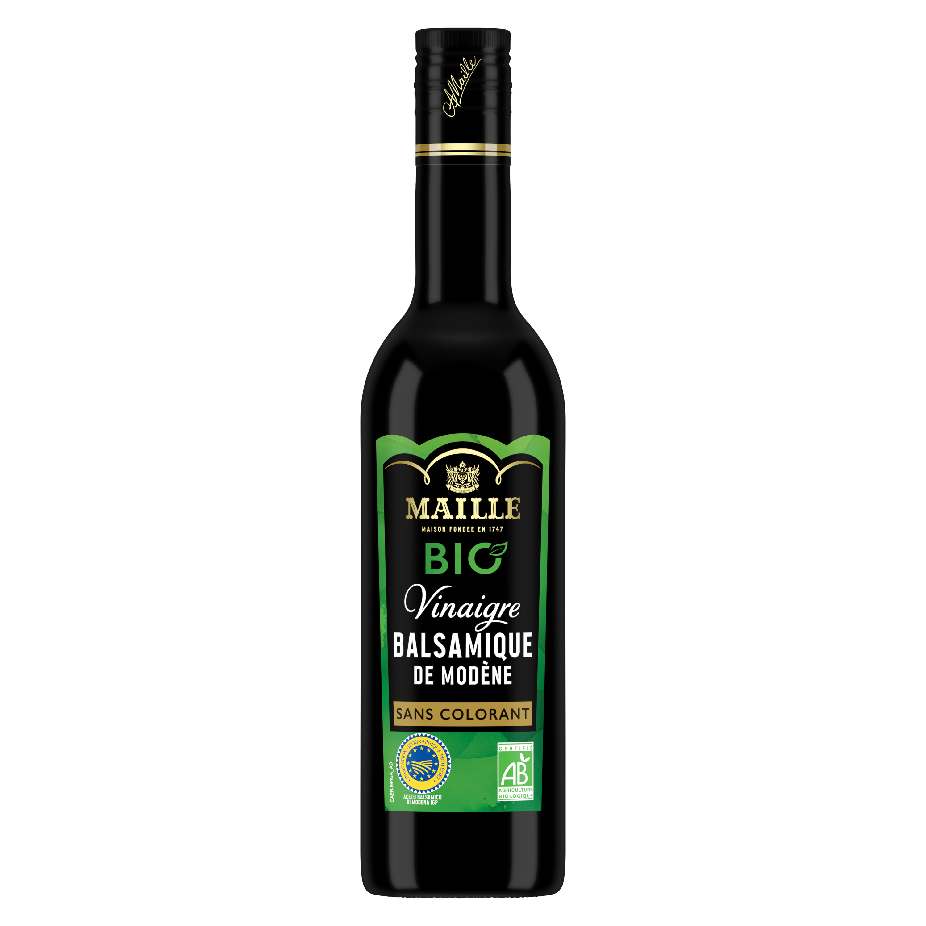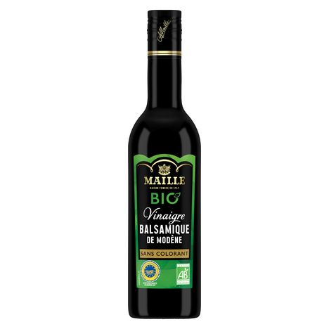 Le Vinaigre Balsamique de Modène Maille® est certifié par l'Organisme de Contrôle autorisé par le Ministère compétent - ITALIE. Provenant de Modène, le Vinaigre Balsamique de Modène Bio est un des grands succès de la Maison Maille®. Il est obtenu selon un procédé rigoureux, préparé grâce à du moût de raisin cuit, marié au vinaigre de vin, et tous les ingrédients sont issus de l'Agriculture Biologique. Vous pouvez badigeonner un poulet à rôtir ou des steaks de thon, en verser un filet sur des tomates en tranches ou assaisonner légèrement vos fraises. Quelques gouttes suffisent pour provoquer une explosion de saveurs. Depuis plus de 270 ans de tradition créative et de savoir-faire, la Maison Maille® est animée par la passion d'explorer les saveurs et de faire grandir celle pour la cuisine. Fondée par Antoine-Claude Maille, maître vinaigrier, il ouvre sa première boutique de condiments à Paris en 1747, où l'on peut découvrir la richesse de ses moutardes aromatisées. Il devient ensuite le fournisseur officiel de la cour du roi Louis XV et accède ainsi à la célébrité. Héritiers d'une créativité cultivée depuis près de 3 siècles, les chefs de la Maison Maille® conçoivent chaque recette comme une œuvre d'art culinaire. Leur obsession : explorer, sélectionner, et associer les meilleurs ingrédients pour apporter son supplément d'âme à chaque recette. Le condiment Maille ® est la touche qui réveille et révèle la beauté d'un plat. Une touche de créativité qui exacerbe le goût, accroît le plaisir et comble les gourmets les plus exigeants… Les produits de la marque Maille® invitent à un voyage dans le monde des saveurs. Avec comme passagers de choix : le savoir-faire, la passion du détail, l'art de la nuance et le raffinement. Pour une expérience immersive dans l'univers Maille®, rendez-vous dans nos boutiques à Paris, Dijon et Bordeaux. Découvrez notre gamme de vinaigres : vinaigre de cidre, vinaigre de vin, Vinaigre Balsamique de Modène et velours ainsi que nos recettes sur www.maille.com.