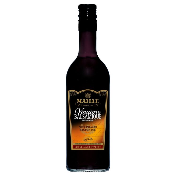 Provenant de Modène, ce produit de renom — un des grands succès de la Maison Maille -, est obtenu selon un procédé rigoureux préparé à partir de moût de raisin concentré, voire cuit, marié au vinaigre de vin. Vous pouvez badigeonner un poulet à rôtir ou des steaks de thon, en verser un filet sur des tomates en tranches ou assaisonner légèrement vos fraises. Quelques gouttes suffisent pour provoquer une explosion de saveurs. Depuis près de 270 ans de tradition créative et de savoir-faire, la Maison Maille est animée par la passion d'explorer les saveurs et de faire grandir celle pour la cuisine. Fondée par Antoine-Claude Maille, maitre vinaigrier, il ouvre sa première boutique de condiments à Paris en 1747, où l'on peut découvrir la richesse de ses moutardes aromatisées. Il devient ensuite le fournisseur officiel de la cour du roi Louis XV et accède ainsi à la célébrité. Héritiers d'une créativité cultivée depuis près de trois siècles, les chefs de la Maison Maille conçoivent chaque recette comme une œuvre d'art culinaire. Leur obsession : explorer, sélectionner, et associer les meilleurs ingrédients pour apporter son supplément d'âme à chaque recette. Le condiment Maille est la touche qui réveille et révèle la beauté d'un plat. Une touche de créativité qui exacerbe le goût, accroît le plaisir et comble les gourmets les plus exigeants… Les produits de la marque Maille invitent à un voyage dans le monde des saveurs. Avec comme passagers de choix : le savoir-faire, la passion du détail, l'art de la nuance et le raffinement. Pour une expérience immersive dans l'univers Maille, rendez-vous dans nos boutiques à Paris, Dijon et Bordeaux. Découvrez notre gamme de vinaigres : vinaigre de cidre, vinaigre de vin, vinaigre balsamique de Modène et velours ainsi que nos recettes sur www.maille.com.
