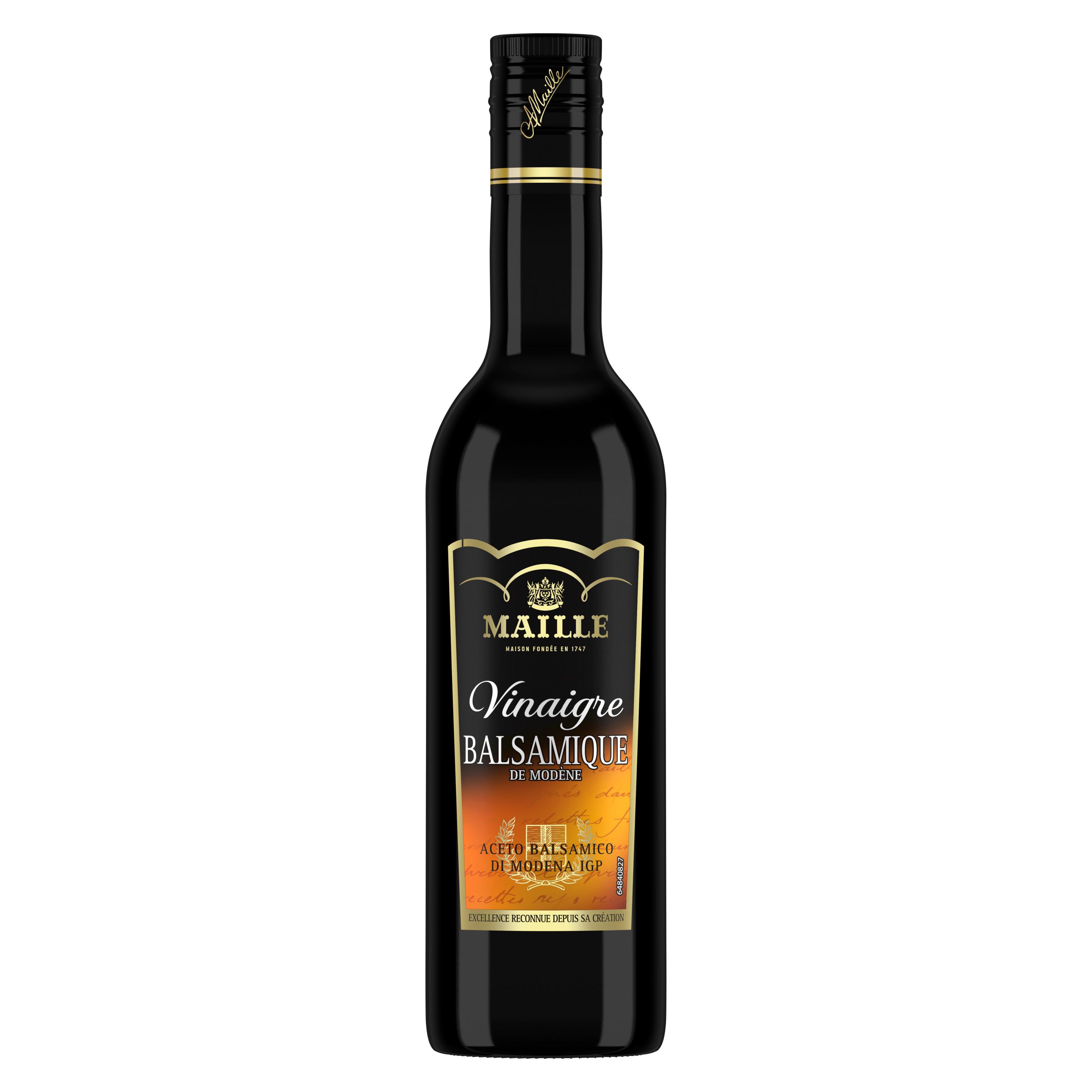 Provenant de Modène, ce célèbre produit artisanal - un des grands succès de la Maison Maille -, est obtenu selon un procédé rigoureux préparé à partir de moût de raisin concentré voire cuit, marié au vinaigre de vin. Vous pouvez badigeonner un poulet à rôtir ou des steaks de thon, en verser un filet sur des tomates en tranches ou assaisonner légèrement vos fraises. Quelques gouttes suffisent pour provoquer une explosion de saveurs. Depuis près de 270 ans de tradition créative et de savoir-faire, Maille est la touche qui réveille et révèle la beauté d'un plat. Une touche de créativité qui exacerbe le goût, accroît le plaisir et comble les gourmets les plus exigeants… Les produits Maille invitent à un voyage dans le monde des saveurs. Avec comme passagers de choix : la passion du détail, l'art de la nuance et le raffinement. Découvrez nos recettes sur www.maille.com