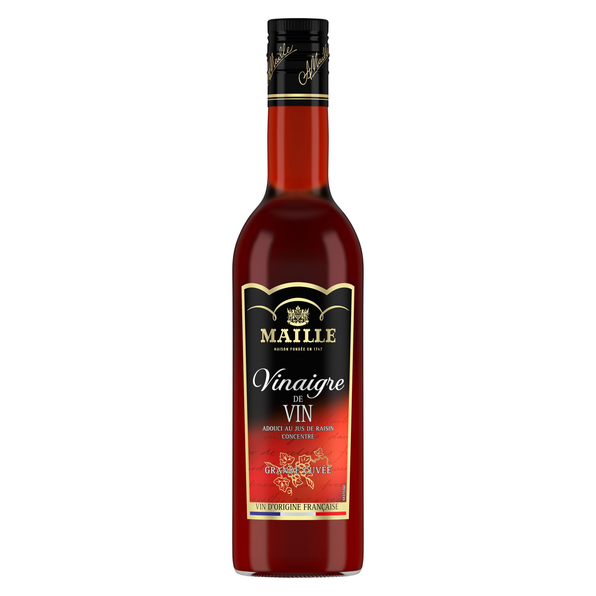 Vieilli en fût de chêne pendant 12 mois, le Vinaigre de Vin Rouge adouci au jus de raisin concentré Grande Cuvée Maille® offre une saveur ronde et généreuse, obtenue par l'ajout de jus de raisin concentré. Grâce à sa générosité, quelques gouttes seulement suffiront pour apporter un parfait équilibre à vos plats de légumes, de viandes et de poissons et à vos sauces. Depuis plus de 270 ans de tradition créative et de savoir-faire, la Maison Maille® est animée par la passion d'explorer les saveurs et de faire grandir celle pour la cuisine. Fondée par Antoine-Claude Maille, maître vinaigrier, il ouvre sa première boutique de condiments à Paris en 1747, où l'on peut découvrir la richesse de ses moutardes aromatisées. Il devient ensuite le fournisseur officiel de la cour du roi Louis XV et accède ainsi à la célébrité. Héritiers d'une créativité cultivée depuis près de 3 siècles, les chefs de la Maison Maille® conçoivent chaque recette comme une œuvre d'art culinaire. Leur obsession : explorer, sélectionner, et associer les meilleurs ingrédients pour apporter son supplément d'âme à chaque recette. Le condiment Maille ® est la touche qui réveille et révèle la beauté d'un plat. Une touche de créativité qui exacerbe le goût, accroît le plaisir et comble les gourmets les plus exigeants… Les produits de la marque Maille® invitent à un voyage dans le monde des saveurs. Avec comme passagers de choix : le savoir-faire, la passion du détail, l'art de la nuance et le raffinement. Pour une expérience immersive dans l'univers Maille®, rendez-vous dans nos boutiques à Paris, Dijon et Bordeaux. Découvrez notre gamme de vinaigres : vinaigre de cidre, vinaigre de vin, Vinaigre Balsamique de Modène et velours ainsi que nos recettes sur www.maille.com.