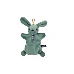 Marionette à main en peluche , Lapin Dorlotin en couleur vert sauge. Fait en France.