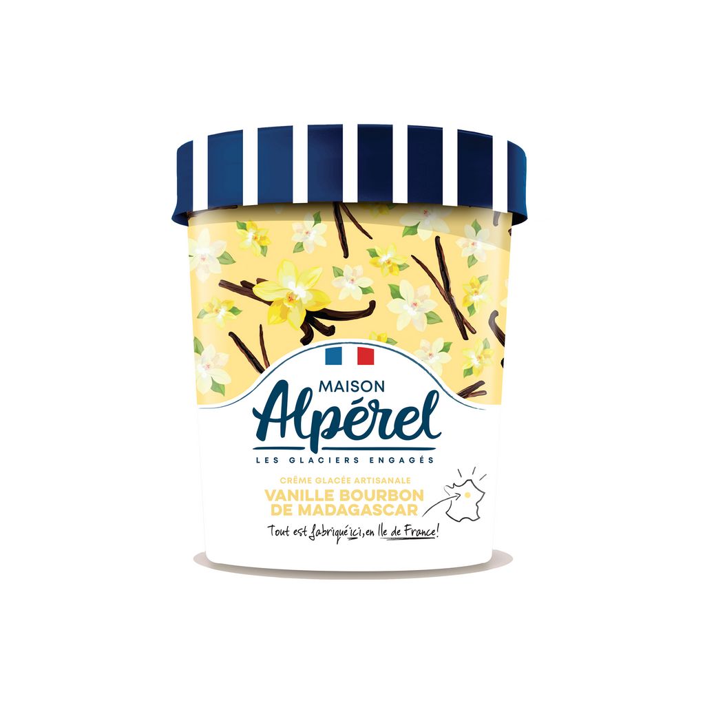 Crème glacée vanille bourbon de Madagascar fabriquée de façon artisanale avec des ingrédients d'origine controlée et sélectionnés avec choix. Cette glace est garantie sans colorants ni conservateurs.