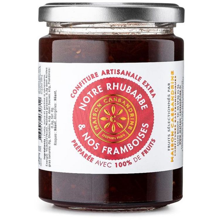 Confiture artisanale extra rhubarbe et framboises